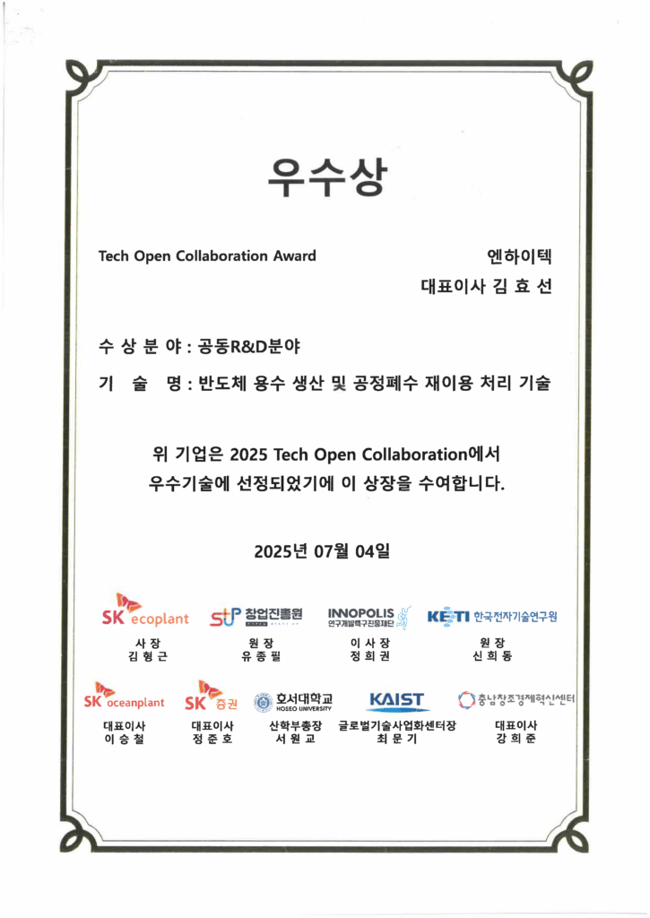 ㈜엔하이텍, 2025 Tech Open Collaboration에서 우수기술 선정·우수상 수상